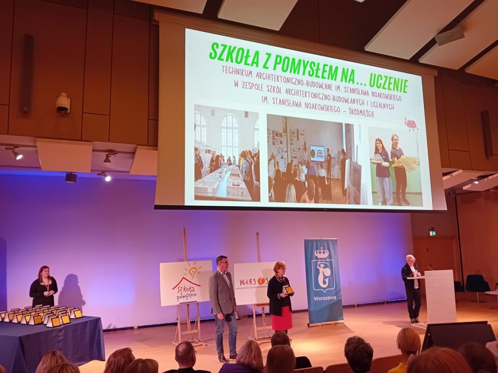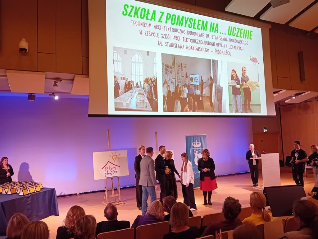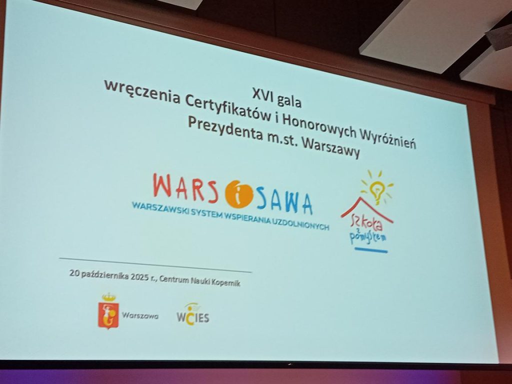 Miło nam poinformować, że Nasza Szkoła zdobyła kolejny raz w ciągu ostatnich czterech lat Honorowe Wyróżnienie „Szkoła z Pomysłem” Prezydenta m. st. Warszawy. Rozdanie nagród odbyło się 20.10. br. w Sali audytoryjnej Centrum Nauki Kopernik.